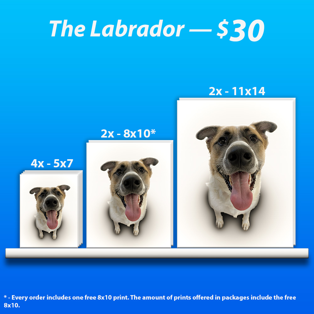 With the brave and loyal Labrador package, you’ll receive the free 8×10 print, plus four 5x7s, another 8×10, and two 11x14s!
